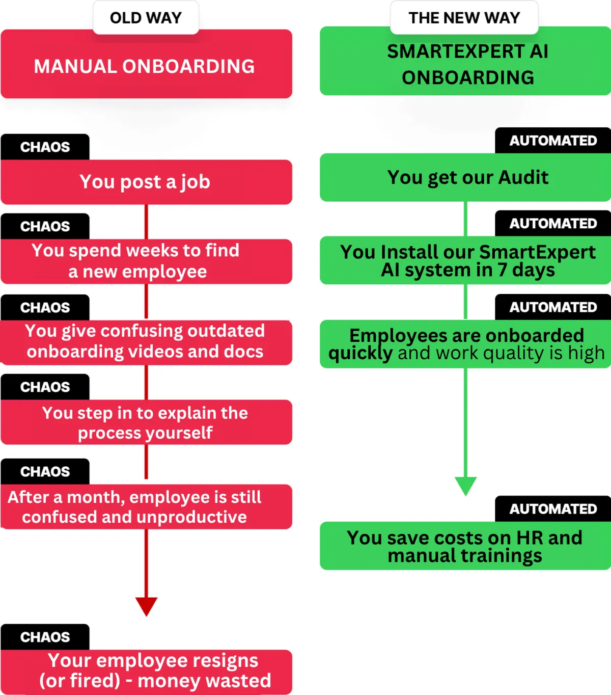 And as a result...this frees you up to actually working on your business instead of stressing over new employees having no clue what to do or spending ridiculous amount of money and time to create and update training systems that get outdated as soon as you get it done - this is the SmartExpert Onboarding Audit.